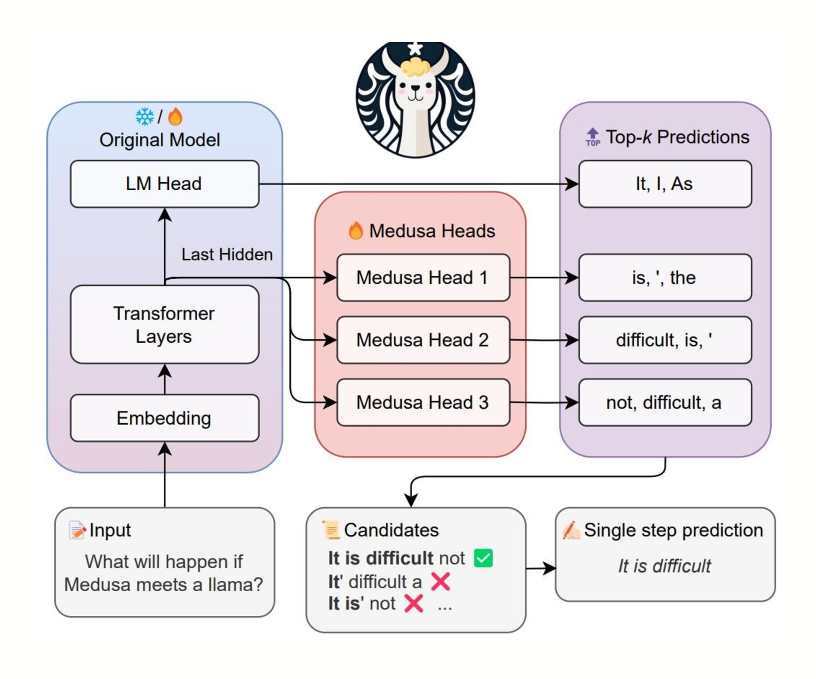 In this method, additional layers (or heads) are added to the large model itself, allowing it to predict multiple tokens in a single forward pass. This reduces the need for a separate draft model, instead leveraging the large model’s own capacity for parallel token generation. Though preliminary, this method shows promise for improving efficiency as more optimized kernels are developed.